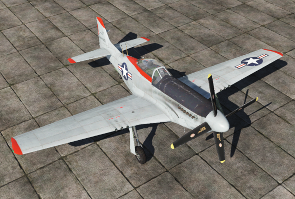 | P-51D型最初のモデル。全体的に器用貧乏と言った感じの性能で、旋回戦も出来なくはないがロスが大きく継続しては回れず、 直線性能は高めだが加速が遅いので長い助走距離が必要、降下速度は良いが上昇が良くないなどの微妙なラインの性能に加え ドイツではFw190D型や日本では疾風、雷電などの高性能機と出会いやすいため苦戦しがちである。 この機体を使う上で重要な事は無駄な動作を極力減らし、エネルギーロスを抑えることと相手によって立ち回り方を変えることだろうか。 なぜか他のP51D型に比べ最大爆装量がおおい。 | |||||||||