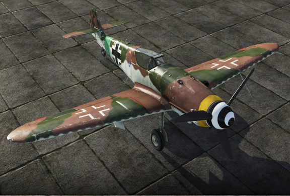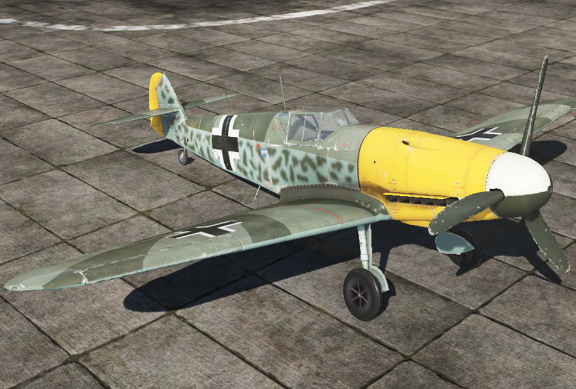 | Bf109E1に20mmMG FFを装備したタイプ。 全体的に凡庸な性能で、それなりに曲がりそれなりに速いがアンダーパワー気味のため旋回をするとすぐに速度が落ちてしまう。 上昇力は比較的優秀な部類のため基本的には一撃離脱をしつつ最悪の場合限定的ながら格闘戦も戦えるといった感じの機体。 | |||||||||